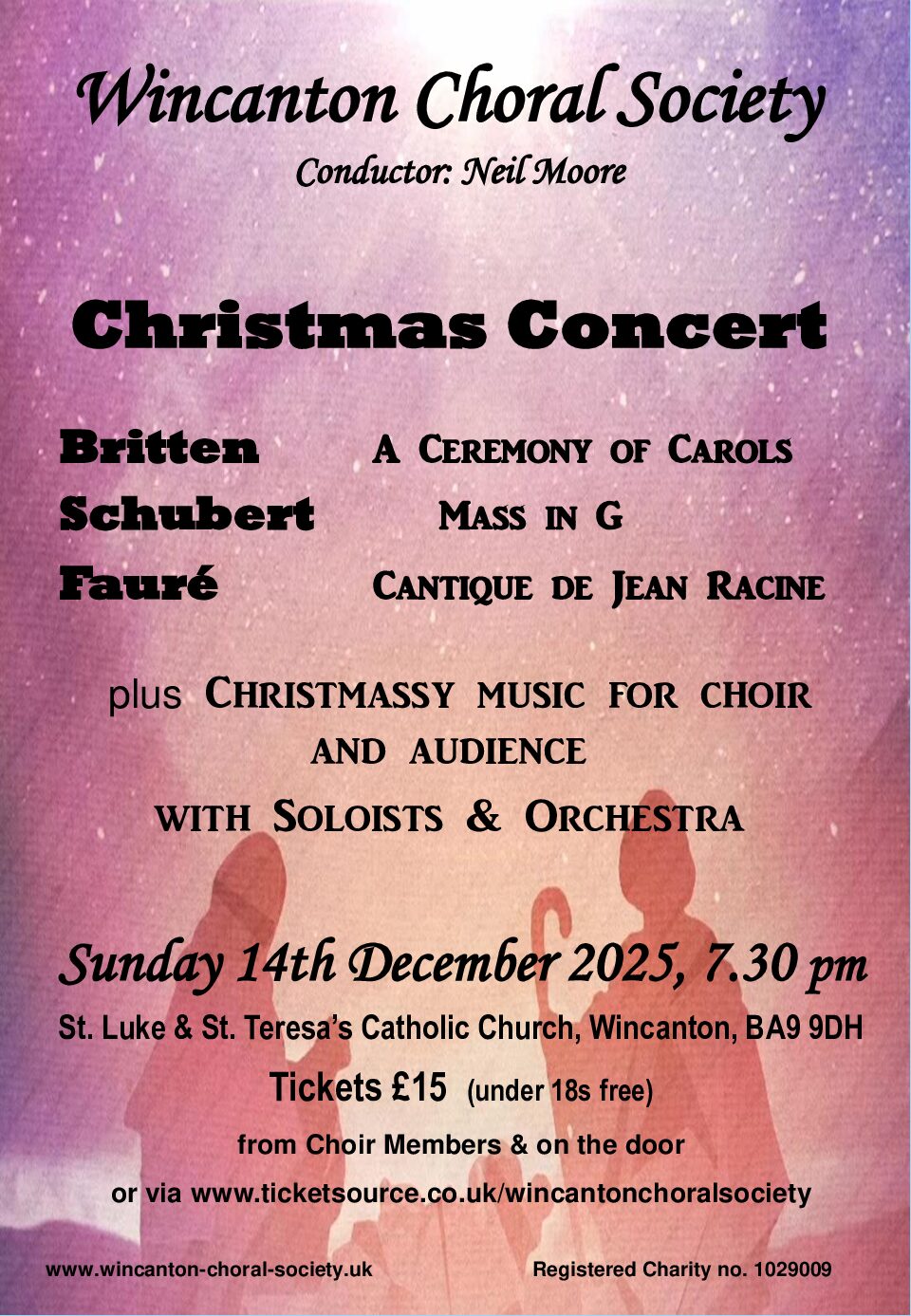 Schubert Mass No. 2 in G Major, D 167. Britten – Ceremony of Carols. Fauré – Cantique de Jean Racine.