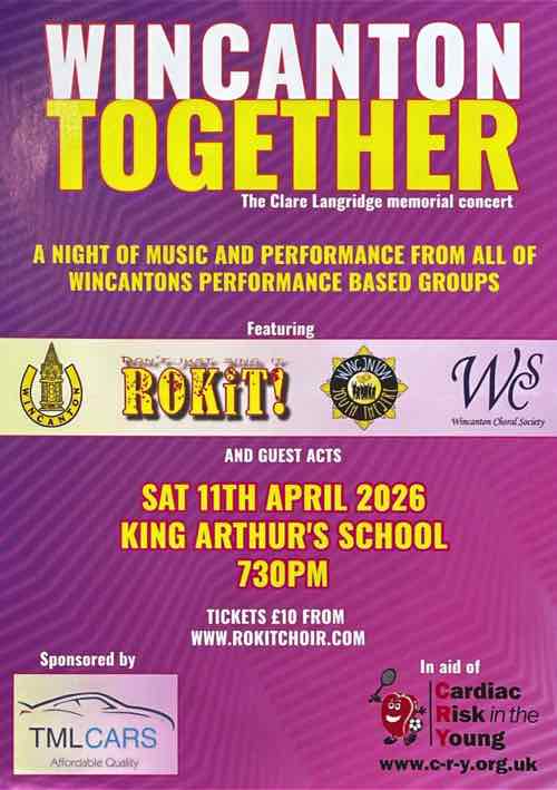 The Wincanton Choral Society is pleased to join this event organized by Wincanton Rokit Choir to raise funds in support of the Cardiac Risk in the Young Charity (www.c-r-y.org.uk).